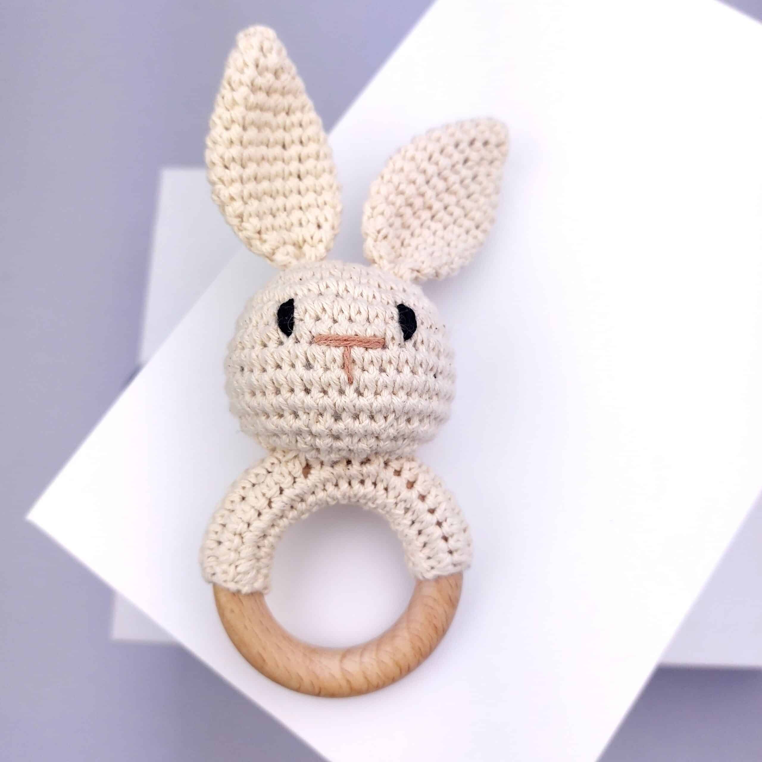 - 1 Amigurumi Animal crochet rattle toy: Cream Bunny